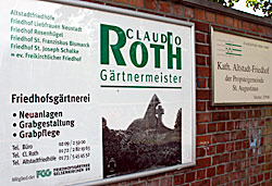 Inhaber: Claudio Roth Im Südfeld 66 45897 Gelsenkirchen Telefon-Büro: 0209-95680800 Fax-Nummer: 0209-22054 Mobil-Altstadtfriedhof: 0173-5454552 Mobil- Claudio Roth: 0172-2821963
